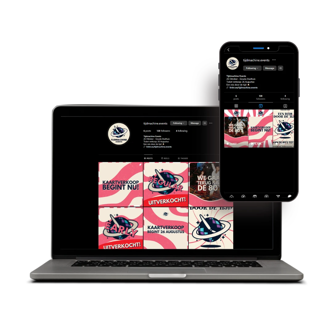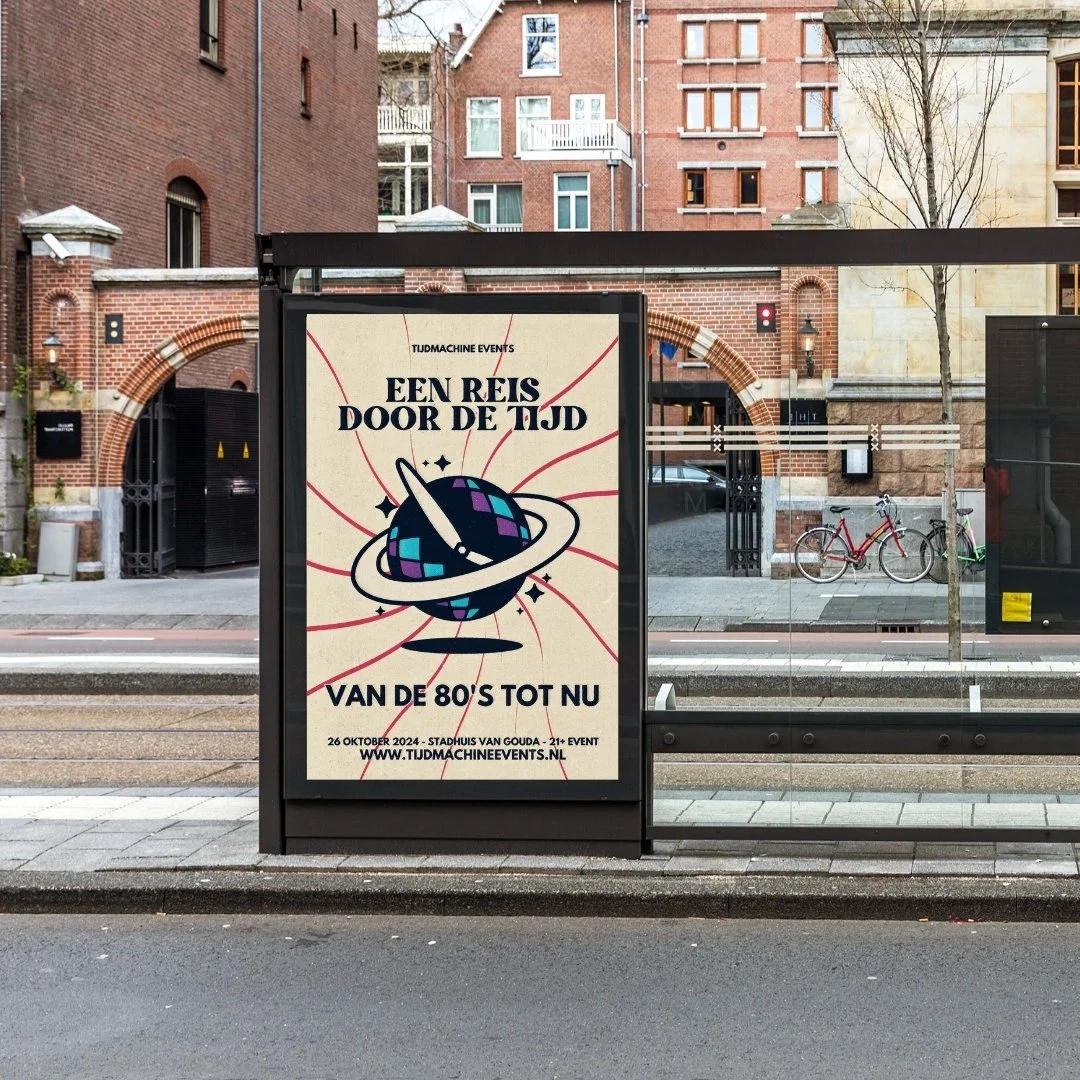 Tijdmachine Events is a party that takes you through the decades, with music from then and now. I basically did it all: built the website, made the trailer, designed Instagram posts, created a new logo, and made the event poster. The goal? A sold-out venue.
